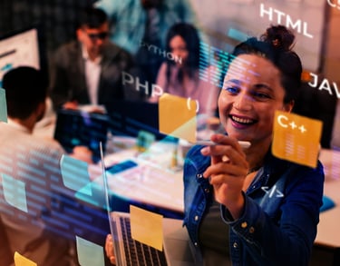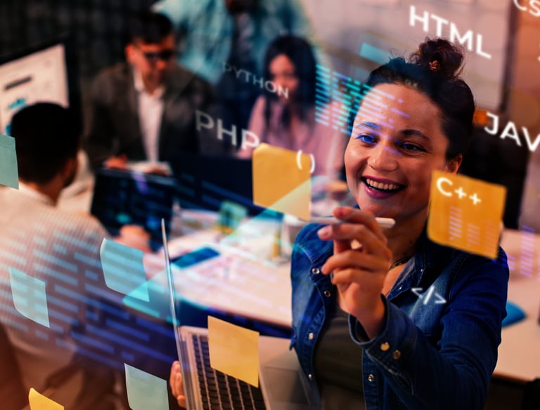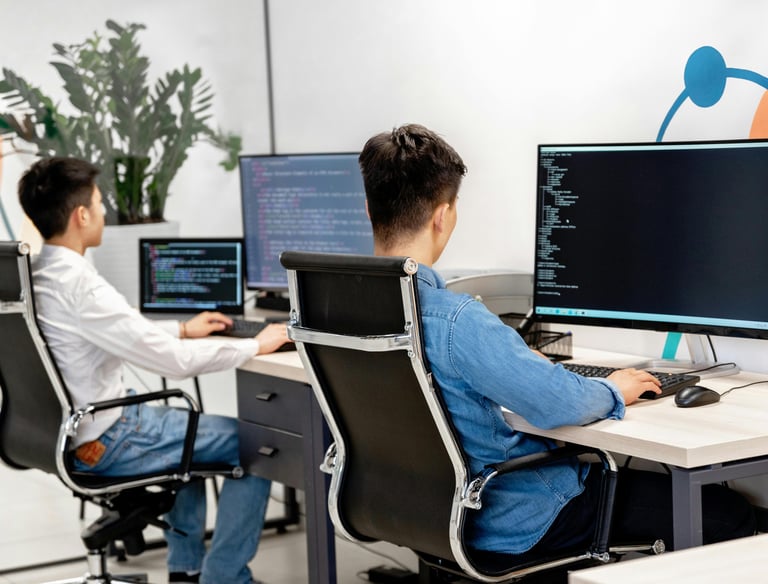 Construcción con tecnologías de vanguardia (React, Angular, Node.js, Python, .NET) asegurando escalabilidad, seguridad y rendimiento desde el día uno.